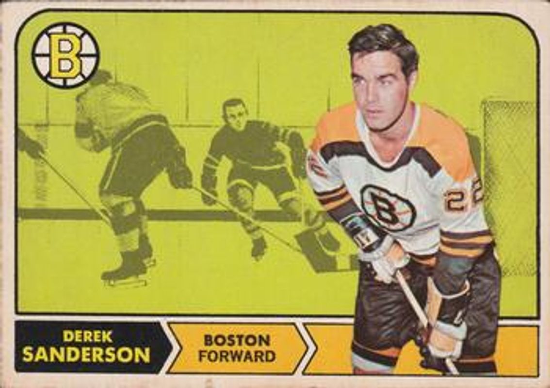 The Derek Sanderson 1968 O-Pee-Chee #6 Base card is 1 of 2 Derek Sanderson's card variations in the 1968 O-Pee-Chee set being tracked by Sports Card Investor, including Base.