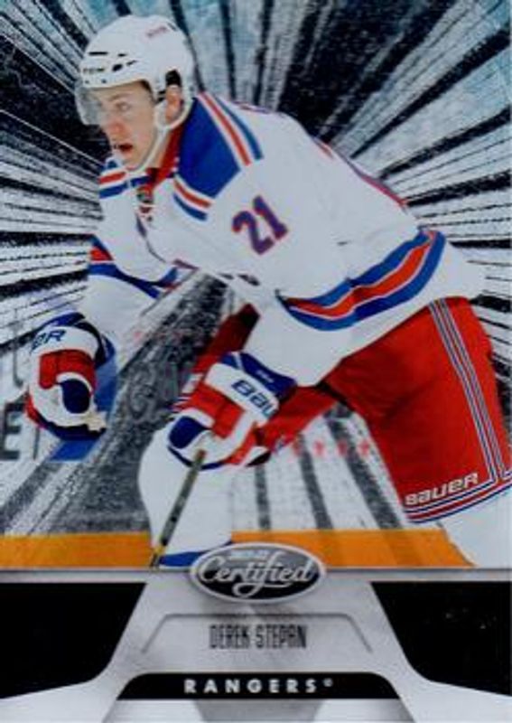 The Derek Stepan 2011 Certified #150 Base /499 card is 1 of 24 Derek Stepan's card variations in the 2011 Certified set being tracked by Sports Card Investor, including Totally Silver, Mirror Red /199, Mirror Red Materials Dual /150, Mirror Blue /99, and Mirror Blue Materials /99.