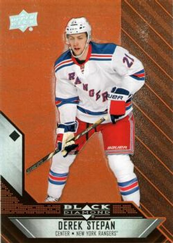 The Derek Stepan 2014 Upper Deck Black Diamond #75 Orange card is 1 of 4 Derek Stepan's card variations in the 2014 Upper Deck Black Diamond set being tracked by Sports Card Investor, including Base, Ruby /50, and Sapphire /1.
