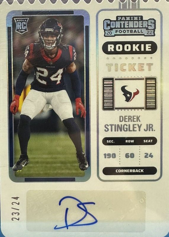 2022 Contenders Derek Stingley Jr. RC Stub Die Cut Ticket Auto /24 RARE Texans