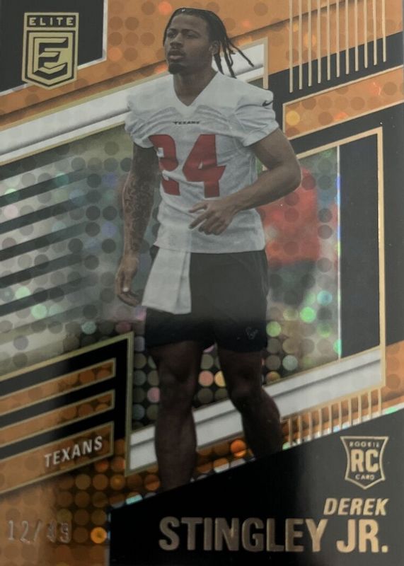 The Derek Stingley Jr. 2022 Elite #141 Orange /49 Rookie card in Raw condition has not changed in price in the last 30 days and was last sold for $1.55 .
