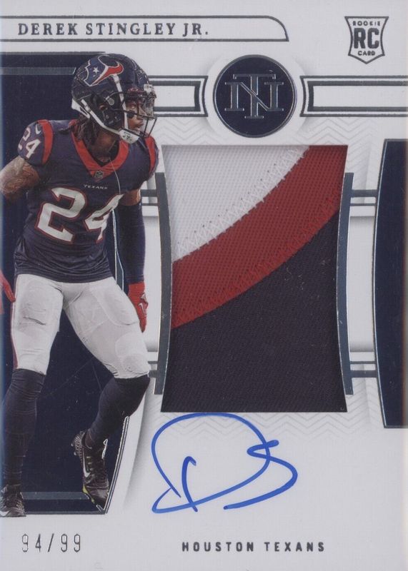 The Derek Stingley Jr. 2022 National Treasures #197 Rookie Patch Auto /99 card in Raw condition has moved down -$37.99 (-38.0%) in the last 30 days and was last sold for $62.00 .