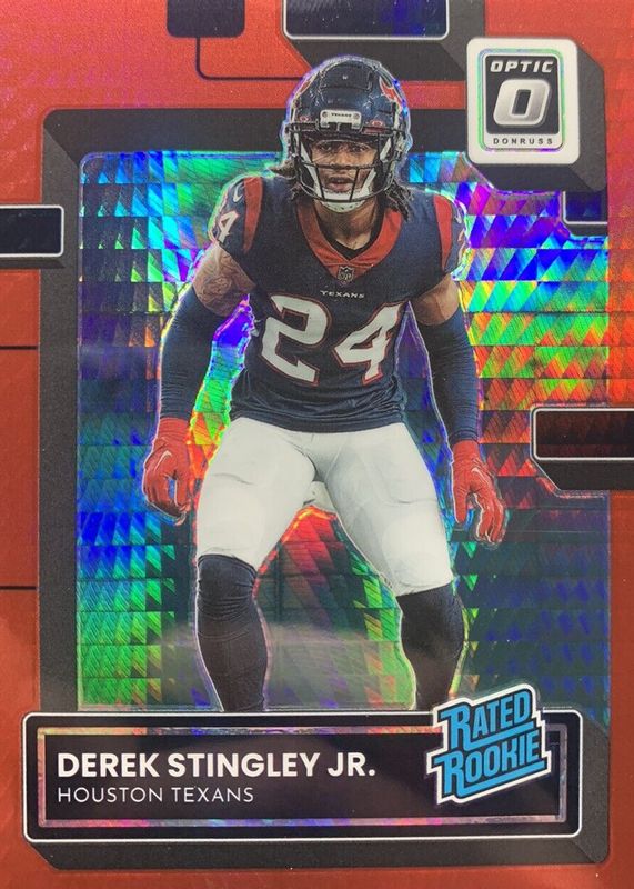 2022 Donruss Optic #244 Derek Stingley Jr. Rated Rookie RC Red Hyper Prizm Texan