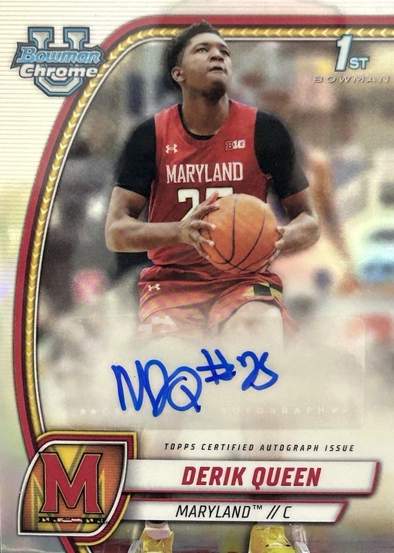 This card is 1 of 46 Derik Queen's card variations in the 2024 Bowman Chrome University set being tracked by Sports Card Investor, including Base (1st), Black Wave Refractor (1st), Green Shimmer Refractor (1st), Purple Lava Refractor (1st), and Refractor (1st).