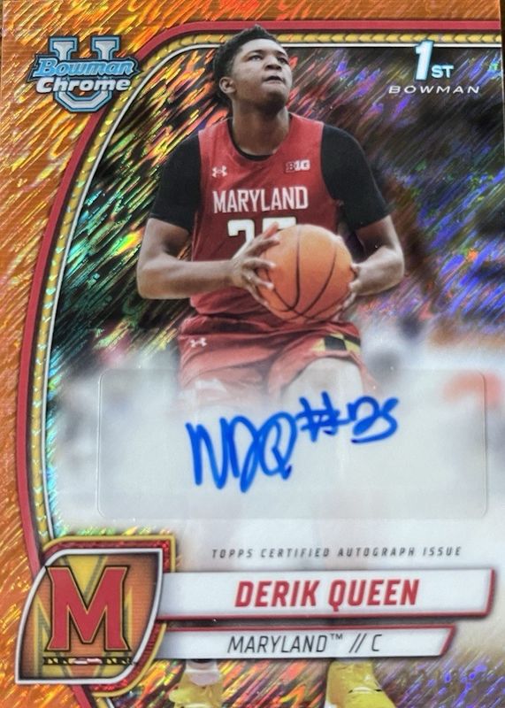 2024-25 Bowman Chrome U Derik Queen Orange Shimmer Auto /65 1st Bowman Maryland