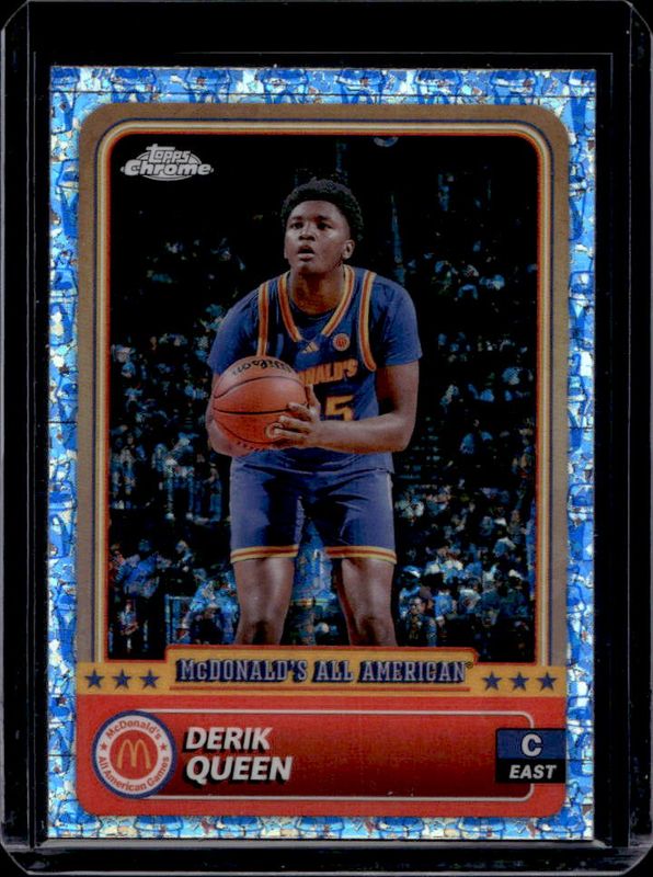 The Derik Queen 2024 Topps Chrome McDonald's All-American #32 McFlurry Refractor card is 1 of 112 Derik Queen's card variations in the 2024 Topps Chrome McDonald's All-American set being tracked by Sports Card Investor, including #82 Base, #32 Base, #32 Blue RayWave Refractor, #82 Blue RayWave Refractor, and #32 McDonald's Logo Refractor.
