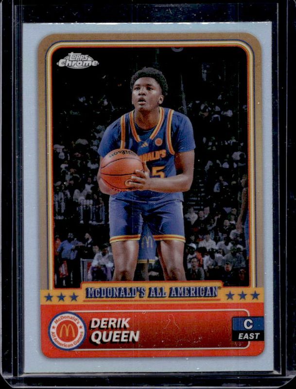 The Derik Queen 2024 Topps Chrome McDonald's All-American #32 Refractor card is 1 of 112 Derik Queen's card variations in the 2024 Topps Chrome McDonald's All-American set being tracked by Sports Card Investor, including #82 Base, #32 Base, #32 Blue RayWave Refractor, #82 Blue RayWave Refractor, and #32 McDonald's Logo Refractor.