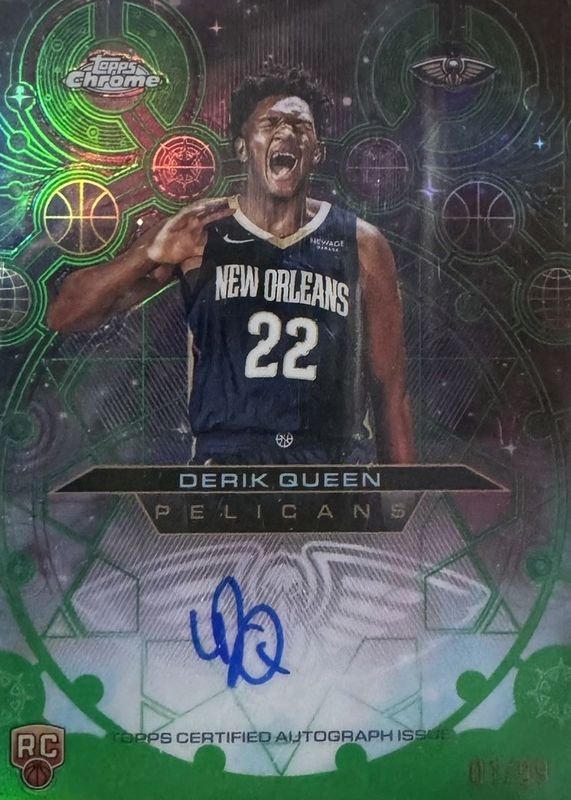 2025-26 Topps Chrome Green Chromographs Auto #'d /99 Derik Queen Rookie Pelicans