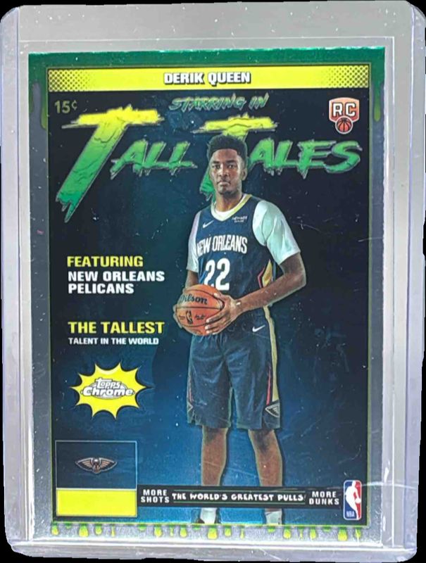 The Derik Queen 2025 Topps Chrome #TT-18 Tall Tales Rookie card is 1 of 244 Derik Queen's card variations in the 2025 Topps Chrome set being tracked by Sports Card Investor, including Base, 1st Day Issue Refractor, Basketball Refractor, Box Set Refractor, and Image Variation.