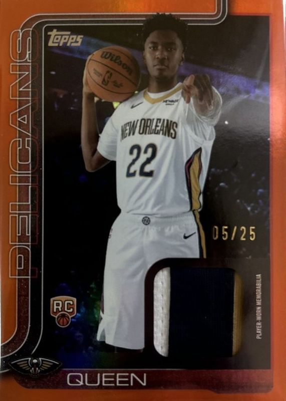 Derik Queen 2025 Topps #FRO-DQ Flagship Real One Relics - Orange Rainbow /25 Rookie RAW Price Guide