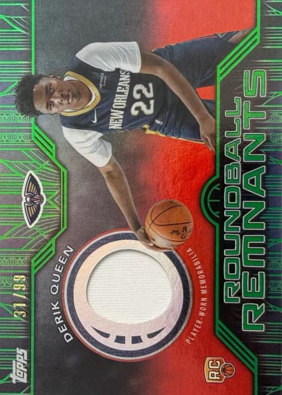 2025-26 Topps Derik Queen Roundball Remnants Green Patch /99 #RRR-DQ Pelicans