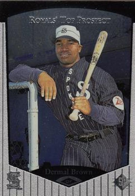 The Dermal Brown 1998 SP Top Prospects #65 Base card is 1 of 4 Dermal Brown's card variations in the 1998 SP Top Prospects set being tracked by Sports Card Investor, including President's Edition /10, Small Town Heroes, and Small Town Heroes President's Edition /10.