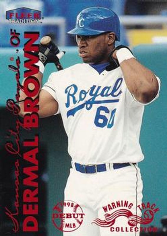 The Dermal Brown 1999 Fleer Tradition #158W Warning Track Collection Rookie card is 1 of 4 Dermal Brown's card variations in the 1999 Fleer Tradition set being tracked by Sports Card Investor, including Base, Millennium, and Starting 9 /9.