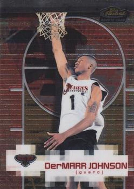 The DerMarr Johnson 2000 Topps Finest #131 Base Rookie card is 1 of 2 DerMarr Johnson's card variations in the 2000 Topps Finest set being tracked by Sports Card Investor, including Gold Refractor /100.