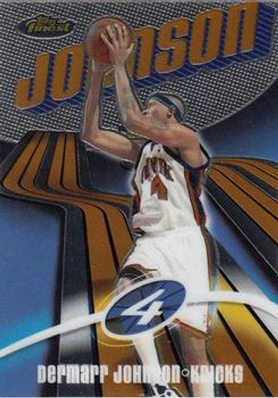 The DerMarr Johnson 2003 Topps Finest #34 Base /999 card is 1 of 8 DerMarr Johnson's card variations in the 2003 Topps Finest set being tracked by Sports Card Investor, including Refractor /250, Gold Refractor /25, Printing Plate Black /1, Printing Plate Cyan /1, and Printing Plate Magenta /1.
