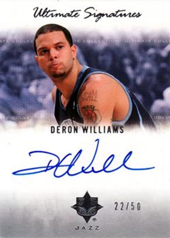 The Deron Williams 2007 Upper Deck Ultimate Collection #US-WI Ultimate Signatures /50 card is 1 of 12 Deron Williams' card variations in the 2007 Upper Deck Ultimate Collection set being tracked by Sports Card Investor, including Base /99, Foil /10, Ultimate Materials, Ultimate Materials Autographs, and Ultimate Leadership /99.