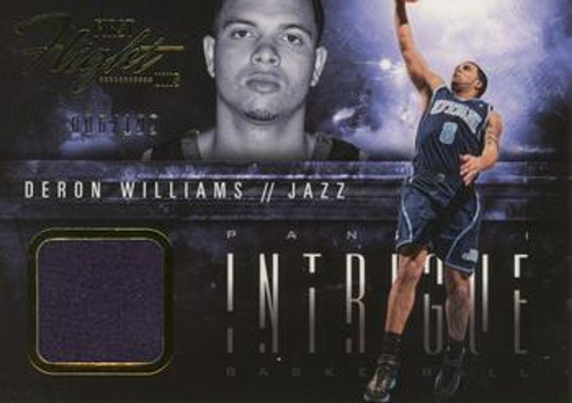 The Deron Williams 2013 Intrigue #19 First Flight Unis /199 card is 1 of 12 Deron Williams' card variations in the 2013 Intrigue set being tracked by Sports Card Investor, including Base, Gold /10, Platinum /1, Dual Jersey Autographs /99, and Top Flight Unis /49.