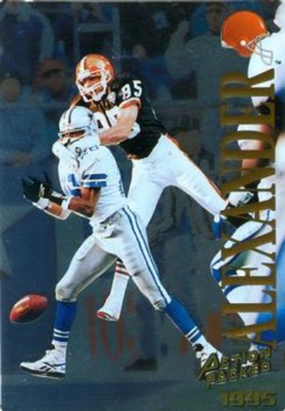 The Derrick Alexander 1995 Action Packed Flagship #110 Quick Silver card is 1 of 4 Derrick Alexander's card variations in the 1995 Action Packed Flagship set being tracked by Sports Card Investor, including #103 Base, #110 Base, and #103 Quick Silver.