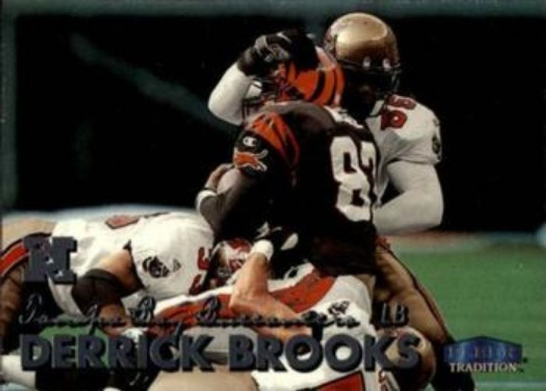The Derrick Brooks 1999 Fleer Tradition #97 Base card is 1 of 3 Derrick Brooks' card variations in the 1999 Fleer Tradition set being tracked by Sports Card Investor, including Blitz Collection, and Trophy Collection /20.