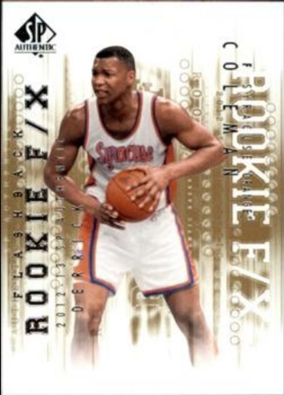The Derrick Coleman 2012 SP Authentic #69 Base card is 1 of 4 Derrick Coleman's card variations in the 2012 SP Authentic set being tracked by Sports Card Investor, including Canvas Collection, Canvas Collection Gold, and By the Letter /100.