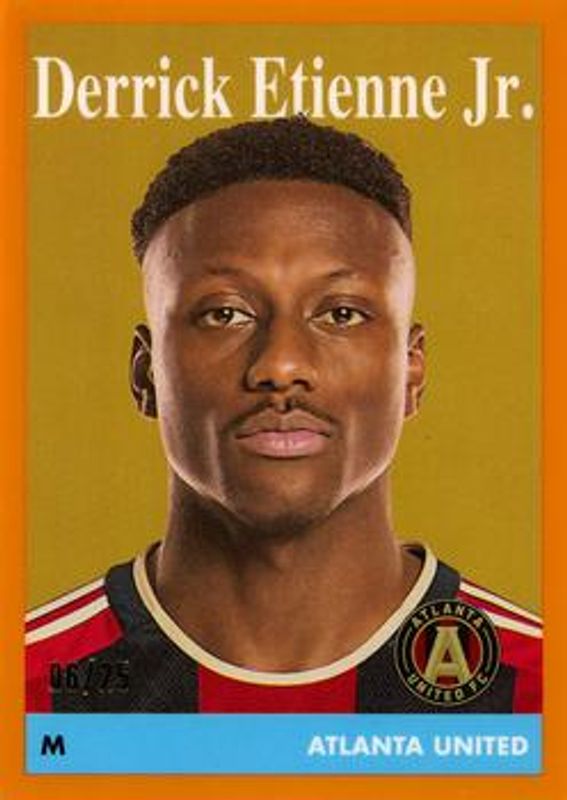 The Derrick Etienne Jr. 2023 Topps Chrome MLS #58T-14 1958 Topps - Orange Refractor /25 card is 1 of 7 Derrick Etienne Jr.'s card variations in the 2023 Topps Chrome MLS set being tracked by Sports Card Investor, including 1958 Topps, 1958 Topps - Aqua Refractor /99, 1958 Topps - Green Refractor /75, 1958 Topps - Gold Refractor /50, and 1958 Topps - Red Refractor /5.