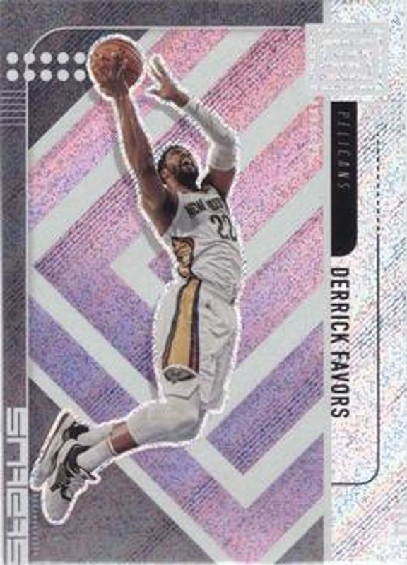The Derrick Favors 2019 Status #171 Base card is 1 of 7 Derrick Favors' card variations in the 2019 Status set being tracked by Sports Card Investor, including Blue, Red, White Diamonds /125, Green Escher Squares /49, and Gold Fireworks /10.