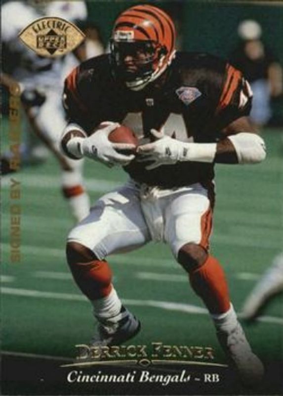 The Derrick Fenner 1995 Upper Deck #218 Electric Gold card is 1 of 3 Derrick Fenner's card variations in the 1995 Upper Deck set being tracked by Sports Card Investor, including Base, and Electric.