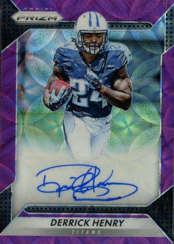 The Derrick Henry 2016 Prizm #RA-DHR Rookie Autographs - Purple Scope /99 card in Raw condition has not changed in price in the last 30 days and was last sold for $299.99 .