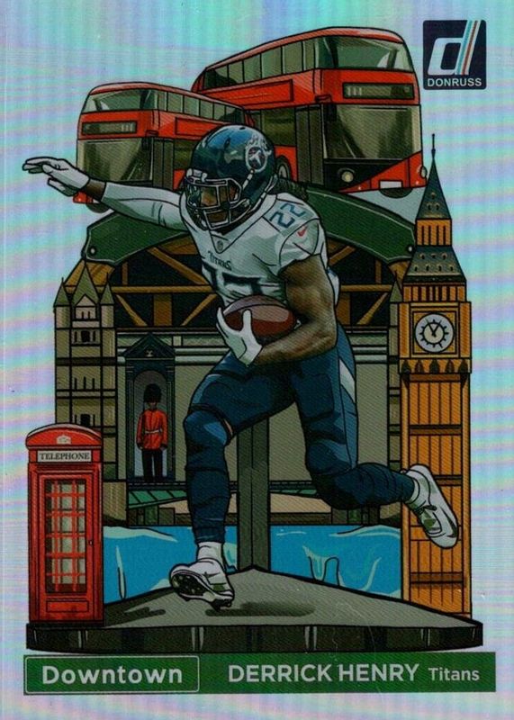 The Derrick Henry 2023 Donruss #ID-DH International Downtown /(SSP) card in Raw condition has not changed in price in the last 30 days and was last sold for $385.00 .