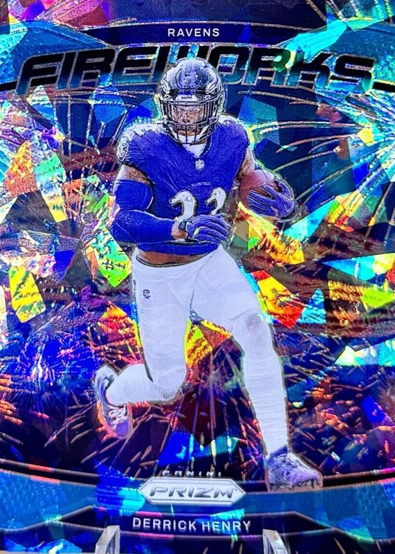 2024 Panini Prizm Derrick Henry Fireworks Blue Cracked Ice /99 Ravens