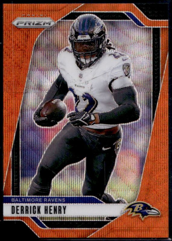The Derrick Henry 2024 Prizm #20 Orange Wave /60 card is 1 of 100 Derrick Henry's card variations in the 2024 Prizm set being tracked by Sports Card Investor, including Base, Choice Blue Yellow Green, Choice Silver, Disco, and Green.