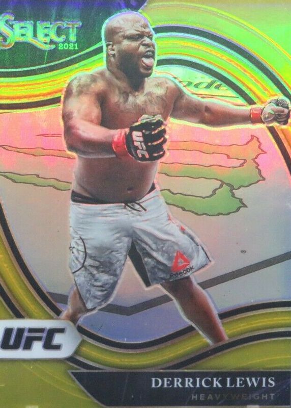 This card is 1 of 48 Derrick Lewis' card variations in the 2021 Select UFC set being tracked by Sports Card Investor, including Concourse Disco, Concourse Scope, Concourse Silver, Concourse Tri-Color, and Octagonside Disco.