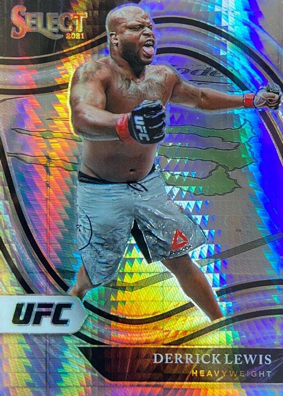 This card is 1 of 48 Derrick Lewis' card variations in the 2021 Select UFC set being tracked by Sports Card Investor, including Concourse Disco, Concourse Scope, Concourse Silver, Concourse Tri-Color, and Octagonside Disco.