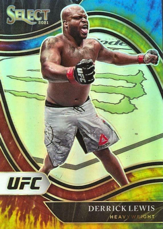 This card is 1 of 48 Derrick Lewis' card variations in the 2021 Select UFC set being tracked by Sports Card Investor, including Concourse Disco, Concourse Scope, Concourse Silver, Concourse Tri-Color, and Octagonside Disco.