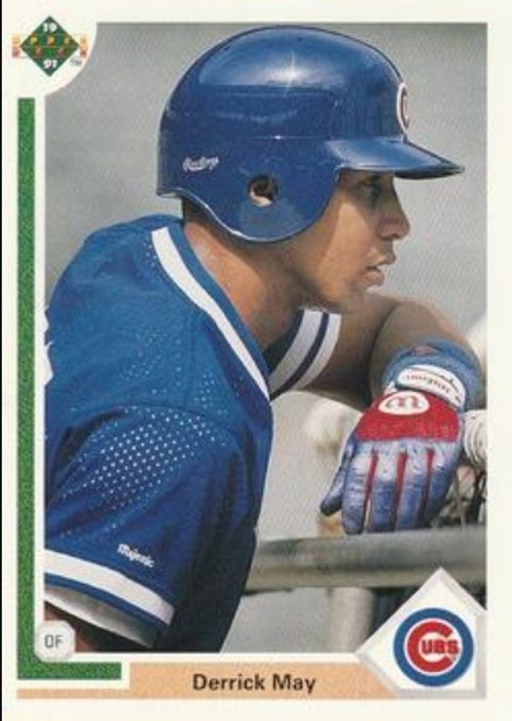 The Derrick May 1991 Upper Deck #334 Base card is 1 of 2 Derrick May's card variations in the 1991 Upper Deck set being tracked by Sports Card Investor, including Base.