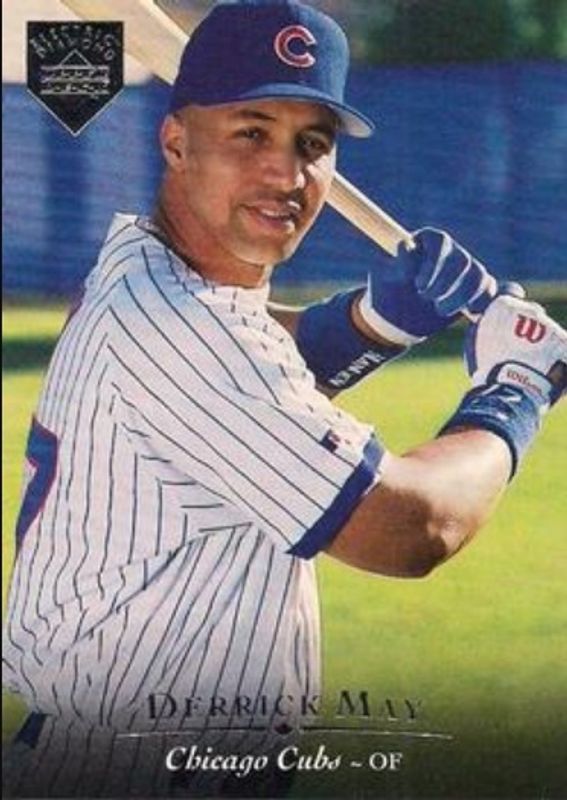 The Derrick May 1995 Upper Deck #68 Electric Diamond card is 1 of 3 Derrick May's card variations in the 1995 Upper Deck set being tracked by Sports Card Investor, including Base, and Electric Diamond Gold.