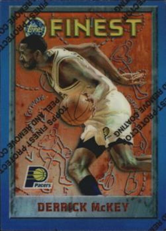 The Derrick McKey 1995 Topps Finest #228 Refractor card is 1 of 2 Derrick McKey's card variations in the 1995 Topps Finest set being tracked by Sports Card Investor, including Base.