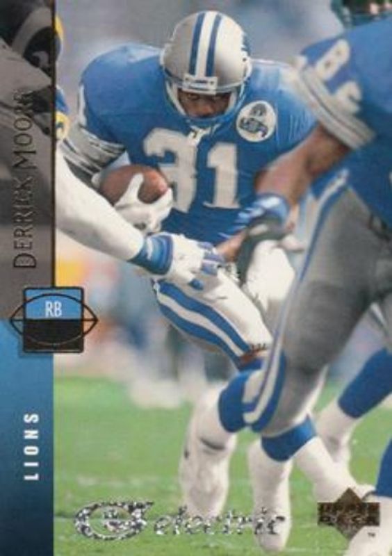 The Derrick Moore 1994 Upper Deck #219 Electric card is 1 of 3 Derrick Moore's card variations in the 1994 Upper Deck set being tracked by Sports Card Investor, including Base, and Electric Gold.