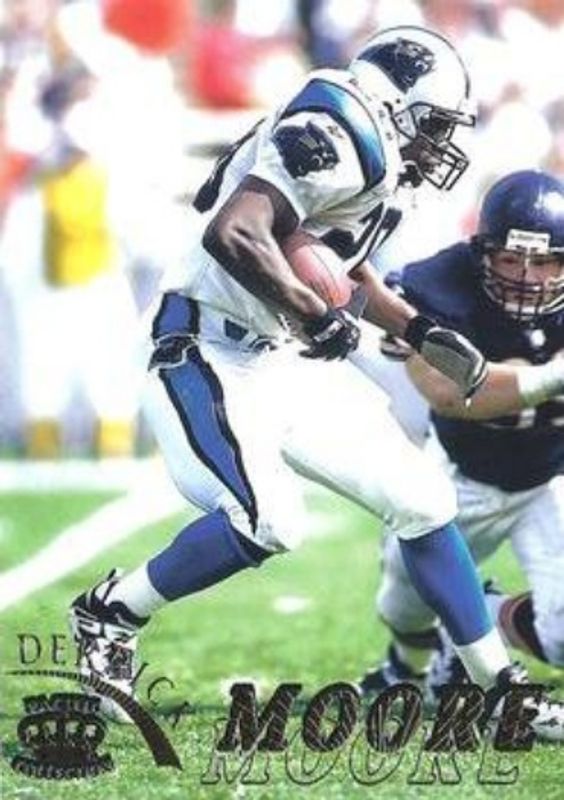 The Derrick Moore 1996 Pacific Gridiron #17 Gold card is 1 of 5 Derrick Moore's card variations in the 1996 Pacific Gridiron set being tracked by Sports Card Investor, including Base, Copper, Platinum, and Red.