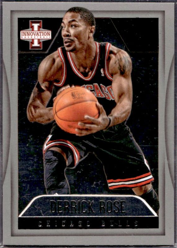 The Derrick Rose 2012 Innovation #184 Base card is 1 of 14 Derrick Rose's card variations in the 2012 Innovation set being tracked by Sports Card Investor, including #50 Base, #184 Red /25, #184 Gold /10, #50 Gold /10, and #50 Platinum /1.