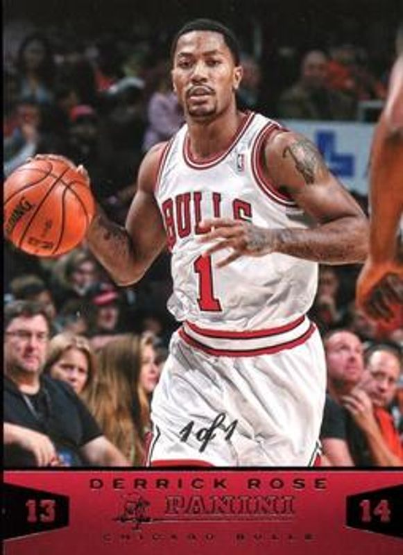 The Derrick Rose 2013 Panini #93 Black Knights /1 card is 1 of 11 Derrick Rose's card variations in the 2013 Panini set being tracked by Sports Card Investor, including Base, Gold Knights, Red Knights, All Panini, and All Panini - Gold.