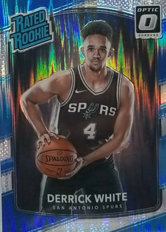 The Derrick White 2017 Optic #172 Shock Rookie card in Raw condition has moved down -$0.76 (-17.9%) in the last 30 days and was last sold for $3.49 .
