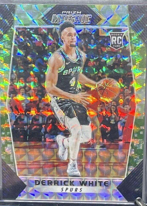 This card is 1 of 9 Derrick White's card variations in the 2017 Prizm Mosaic set being tracked by Sports Card Investor, including Base, Blue, Green, Orange, and Red.