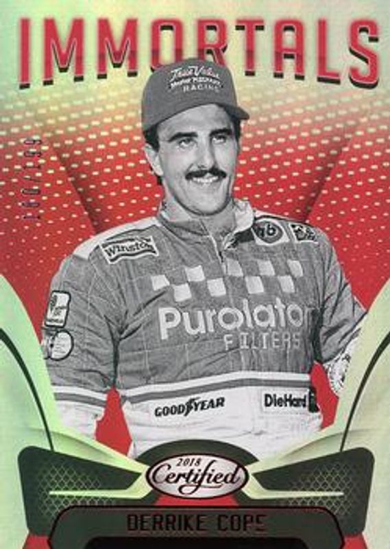 The Derrike Cope 2018 Certified NASCAR #84 Red /25 card is 1 of 12 Derrike Cope's card variations in the 2018 Certified NASCAR set being tracked by Sports Card Investor, including Base /149, Orange /249, Mirror Gold /25, Blue /20, and Gold /15.