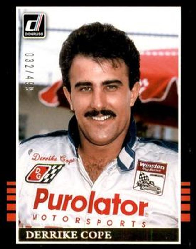 The Derrike Cope 2018 Donruss NASCAR #119 Gold Foil /499 card is 1 of 25 Derrike Cope's card variations in the 2018 Donruss NASCAR set being tracked by Sports Card Investor, including #119 Base, #163 Base, #163 Gold Foil /499, #119 Red Foil /299, and #163 Red Foil /299.