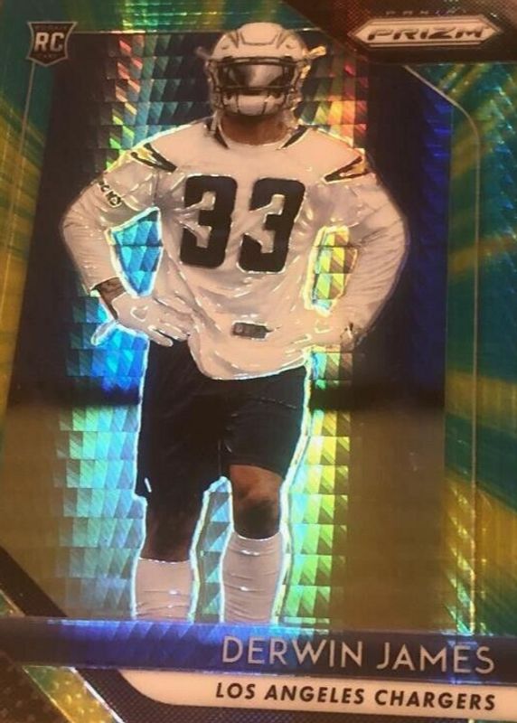 This card is 1 of 40 Derwin James' card variations in the 2018 Prizm set being tracked by Sports Card Investor, including Base, Disco, Green, Lazer, and Neon Green Pulsar.