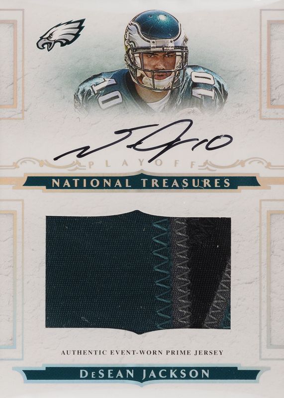 DeSean Jackson's Football cards are available in at least 231 sets. DeSean Jackson's biggest 7-day price movers are 2008 Topps Chrome #TC198 Base, 2008 National Treasures #124 Rookie Patch Auto /99, and 2013 Prizm #166 Black Finite /1.