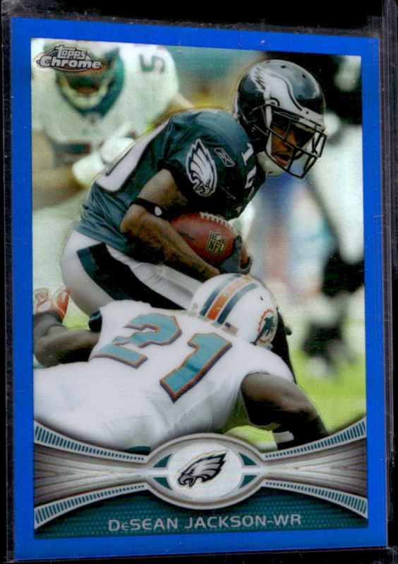 The DeSean Jackson 2012 Topps Chrome #92 Blue Refractor /199 card is 1 of 18 DeSean Jackson's card variations in the 2012 Topps Chrome set being tracked by Sports Card Investor, including Base, Orange Refractor, Refractor, X-Fractor, and Camo Refractor /499.