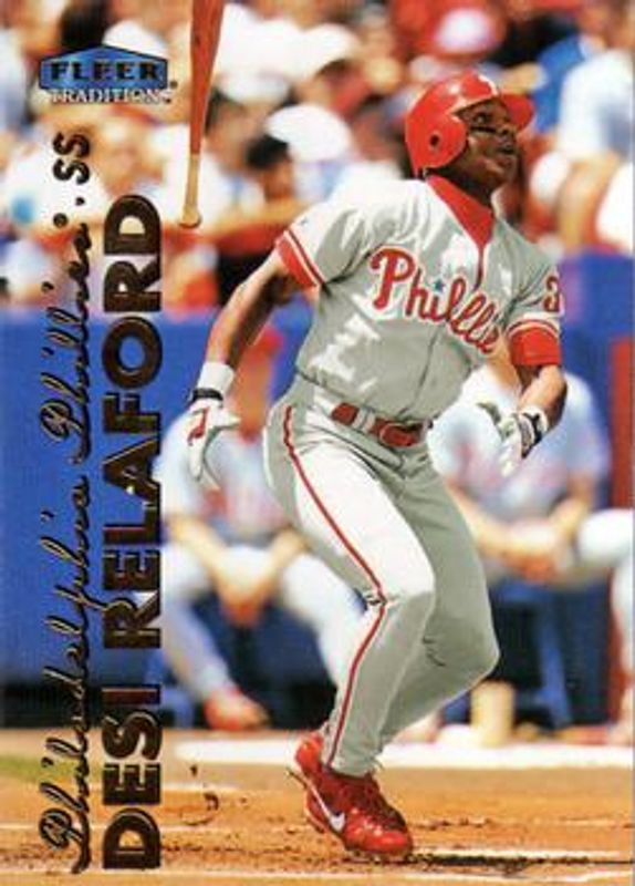 The Desi Relaford 1999 Fleer Tradition #306 Base card is 1 of 4 Desi Relaford's card variations in the 1999 Fleer Tradition set being tracked by Sports Card Investor, including Millennium, Warning Track Collection, and Starting 9 /9.
