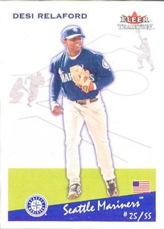 The Desi Relaford 2002 Fleer Tradition Update #U225 Base card is 1 of 2 Desi Relaford's card variations in the 2002 Fleer Tradition Update set being tracked by Sports Card Investor, including Glossy /200.